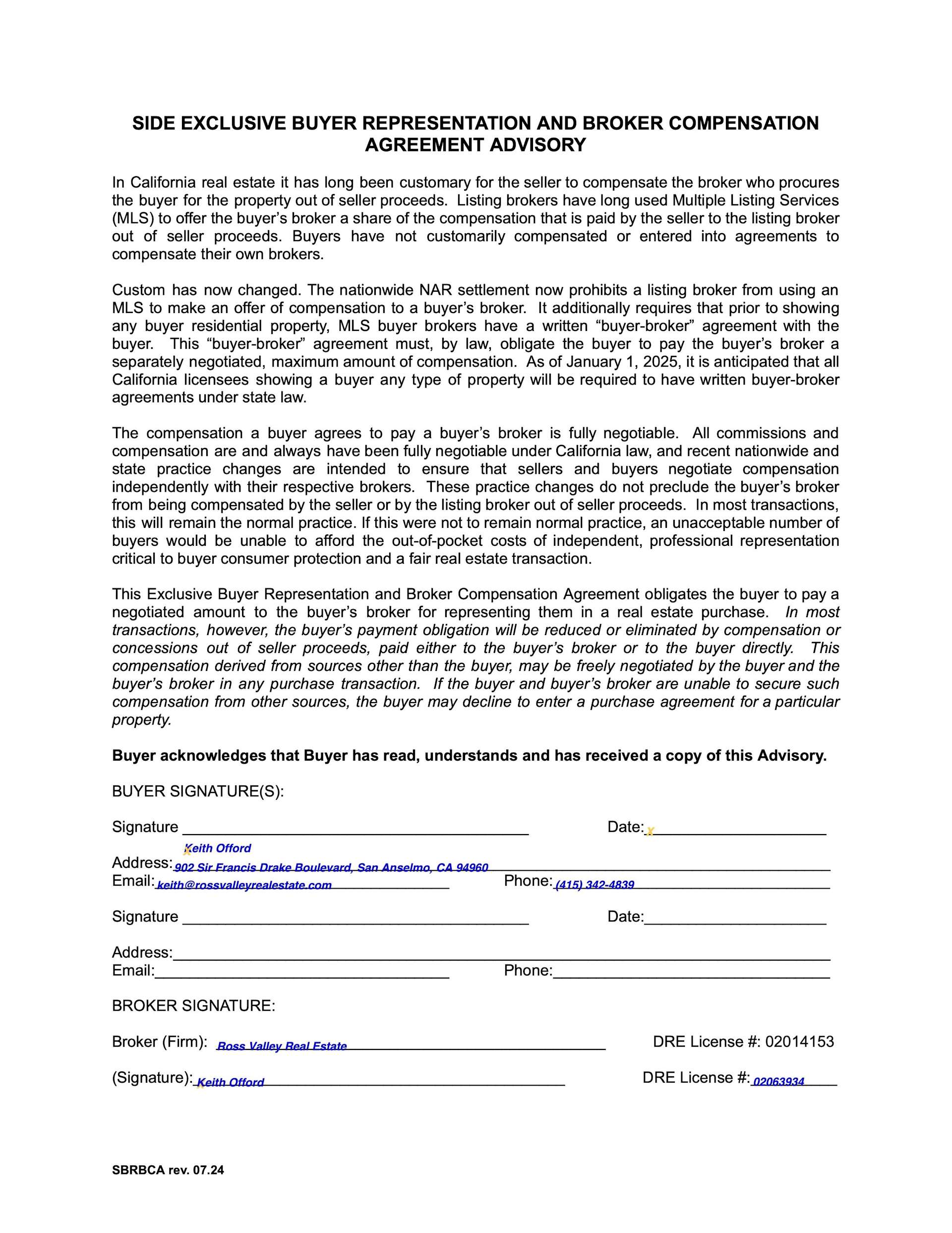 AdvisoryBuyer Representation Agreement
